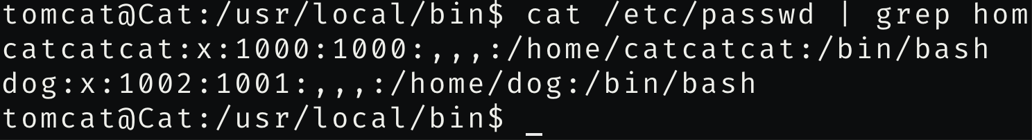 并且在/etc/passwd里发现用户catcatcat