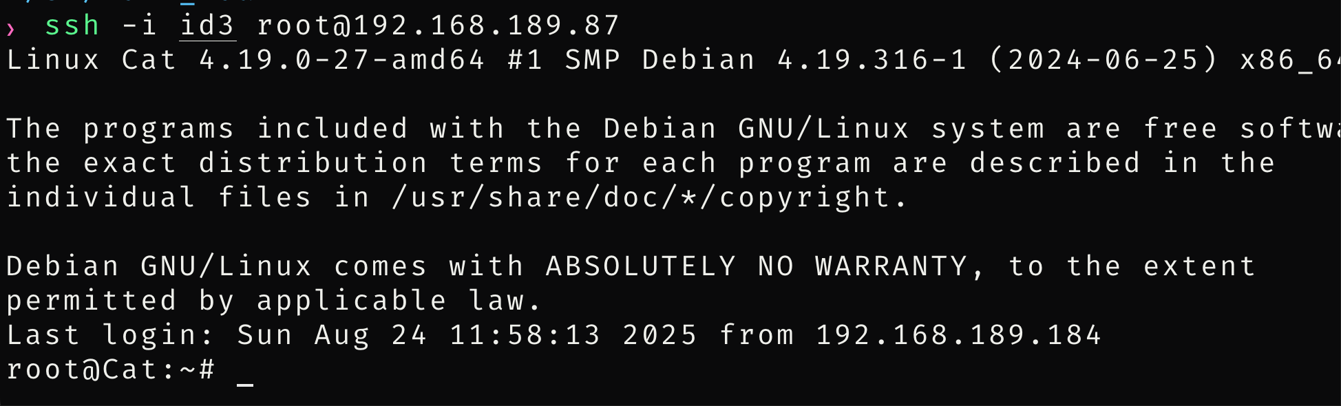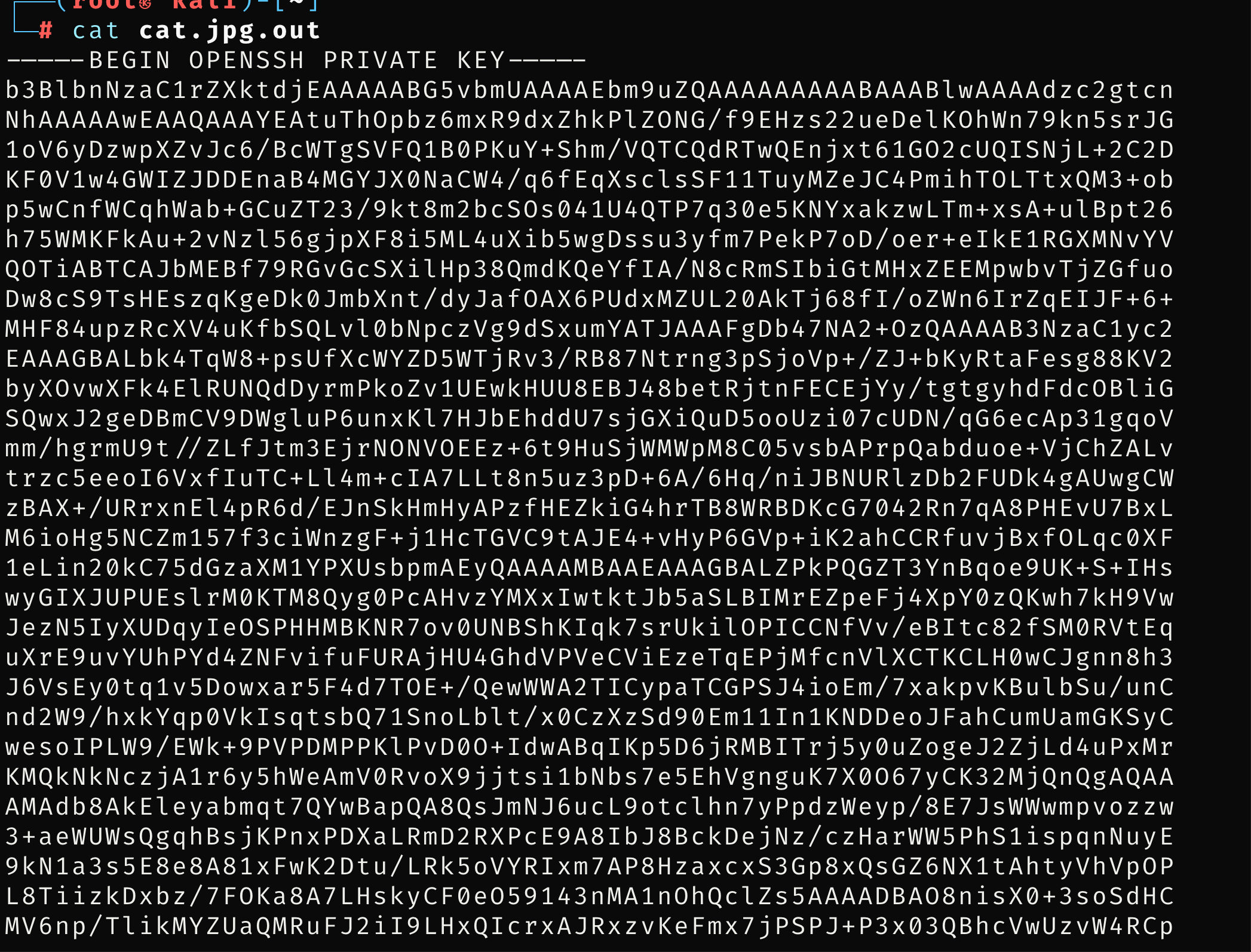 查看一下cat有没有隐写,可以看到是一个私钥,验证一下