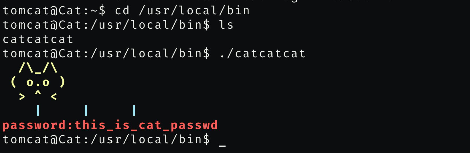 并且在/etc/passwd里发现用户catcatcat